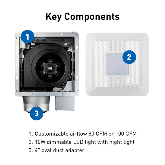 (Open box) Panasonic RG-T810LA | WhisperThin DC LED Pick-A-Flow 80 -100 CFM Ceiling/Wall Bathroom Exhaust Fan, 3-3/8 in. Low Profile Housing