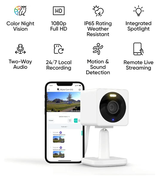 Wyze Cam OG Indoor/Outdoor 1080p Wi-Fi Smart Home Security Camera with Color Night Vision, Built-in Spotlight, Motion Detection, 2-Way Audio, Compatible with Alexa & Google Assistant, White