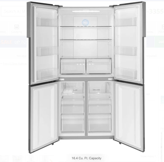 33 Inch Quad Door Counter Depth Refrigerator with 16.4 Cu. Ft. Capacity, Adjustable Shelves, Digital Controls, Humidity Controlled Drawer, Sabbath Mode QHE16HYPAFS
