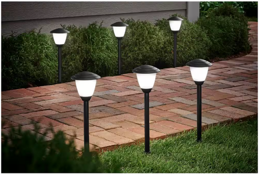 Hampton Bay 1006 684 101 | Lamar Park 50 Lumen Low Voltage Black Integrated LED Waterproof Outdoor Path Lights with Easy Clip Connectors (6-Pack)