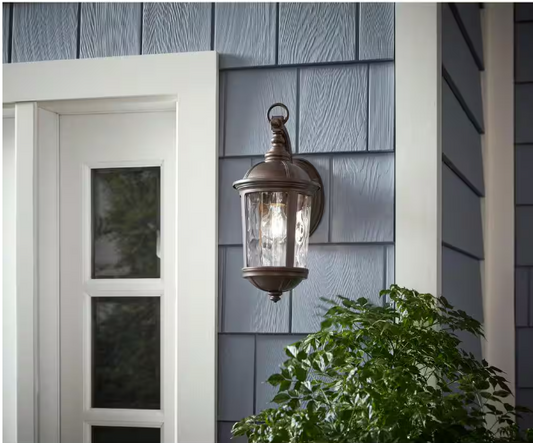 Home Decorators Collection 702 480 | Leeds Mystic Bronze 1-Light Line Voltage Hardwired Outdoor Porch Light Wall Lantern Sconce with No Bulb Included