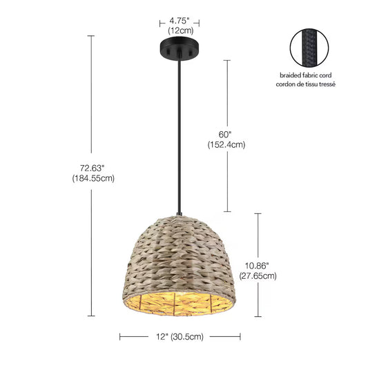 Globe Electric 1001 684 720 | Corbin 1-Light Black Pendant Lighting with Woven Twine Shade