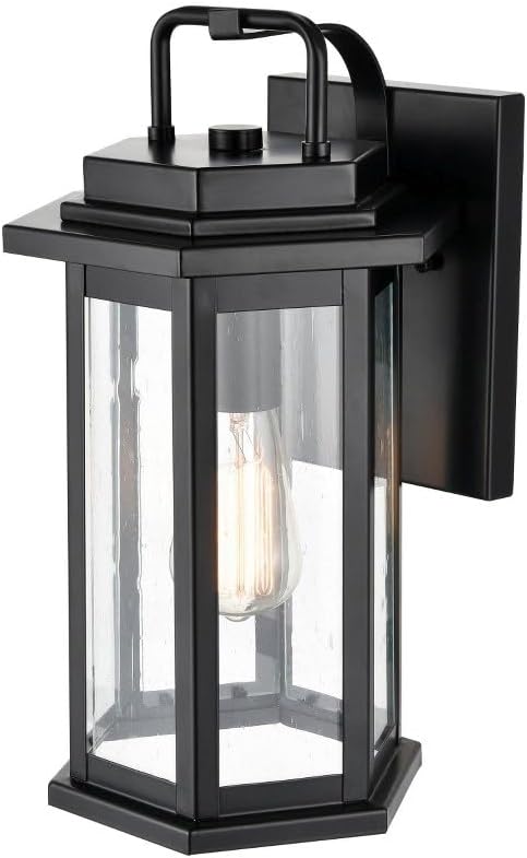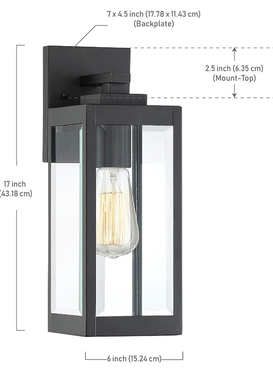 Quoizel WVR8406EK Westover Modern Industrial Clear Seedy Glass Medium Outdoor Wall Lantern Lighting, 1-Light 100 Watt, 17"H x 6"W, Earth Black