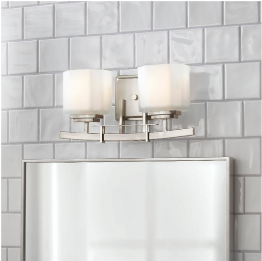 Hampton Bay 1000 036 813 | Architecture 2-Light Brushed Nickel Vanity Light with Etched White Glass Shades