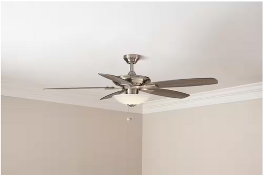 Hampton Bay 1002 586 542 | Menage 52 in. Integrated LED Indoor Low Profile Brushed Nickel Ceiling Fan with Light Kit