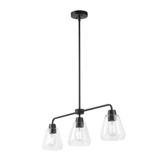 Hampton Bay 6700 0062 | Granby 3-Light Matte Black Linear Chandelier with Glass Shades