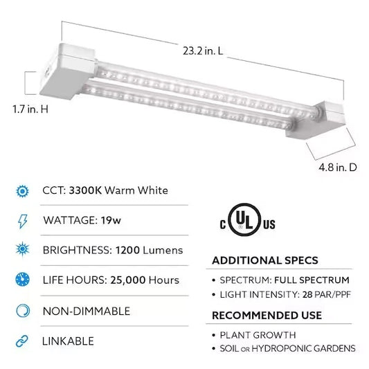 Feit Electric 2ft LED Grow Light - 19W Linkable for Indoor Hydroponic Gardening