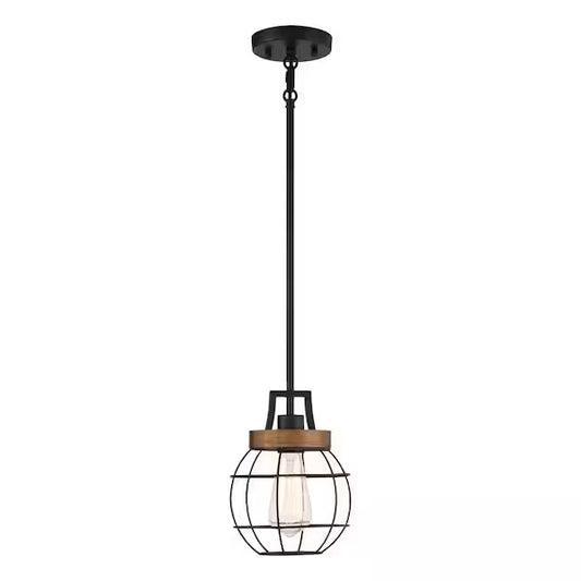 Easy Lite 39061-HBT | 1-Light Matte Black with Faux Wood Pendant