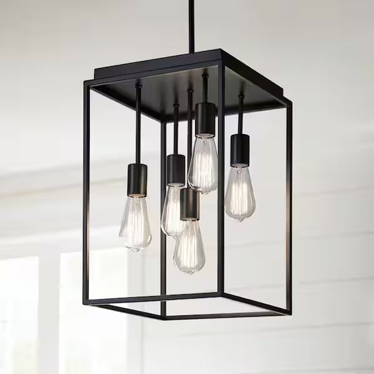 Home Decorators Collection 1004 121 532 | Rollins 5-Light Black Cage Chandelier for Foyer