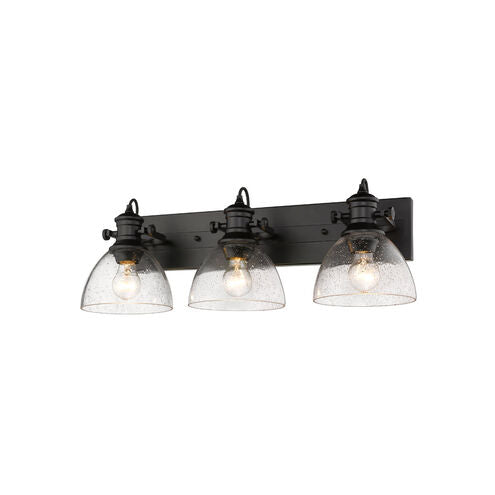 Golden Lighting 3118-BA3 BLK-SD | Hines 3 Light 25 inch Matte Black Bath Vanity Wall Light in Seeded Glass