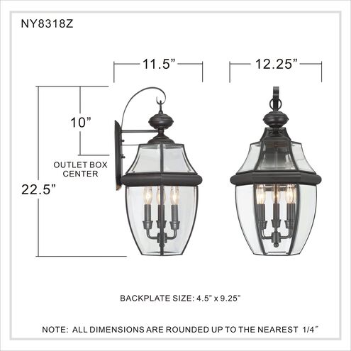 Quoizel NY8318Z | Newbury 3 Light 23 inch Medici Bronze Outdoor Wall Lantern