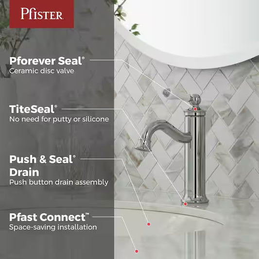 Pfister LF-042-COCC | Courant Single-Handle Single Hole Bathroom Faucet with Deckplate and Drain Kit in Polished Chrome with Porcelain Handle