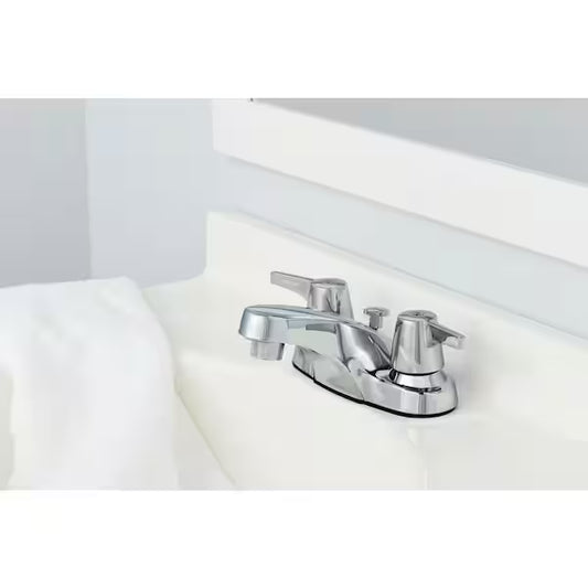 Glacier Bay HD67090W-6B01 | Aragon 4 in. Centerset 2-Handle Low-Arc Bathroom Faucet with Pop-Up Drain in Chrome