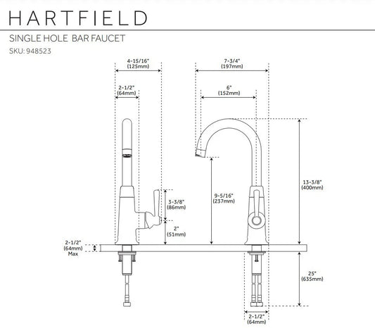 Signature Hardware SHXCHA103CP | Hartfield Single-Hole Bar Faucet – Polished Chrome, Brass Construction