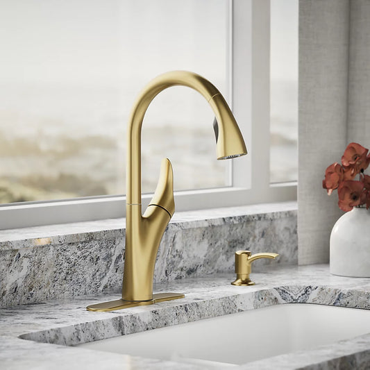 Kohler 1PREC26448-SD-2MB-AA | Transitional Pull Down Kitchen Faucet in Brushed Gold