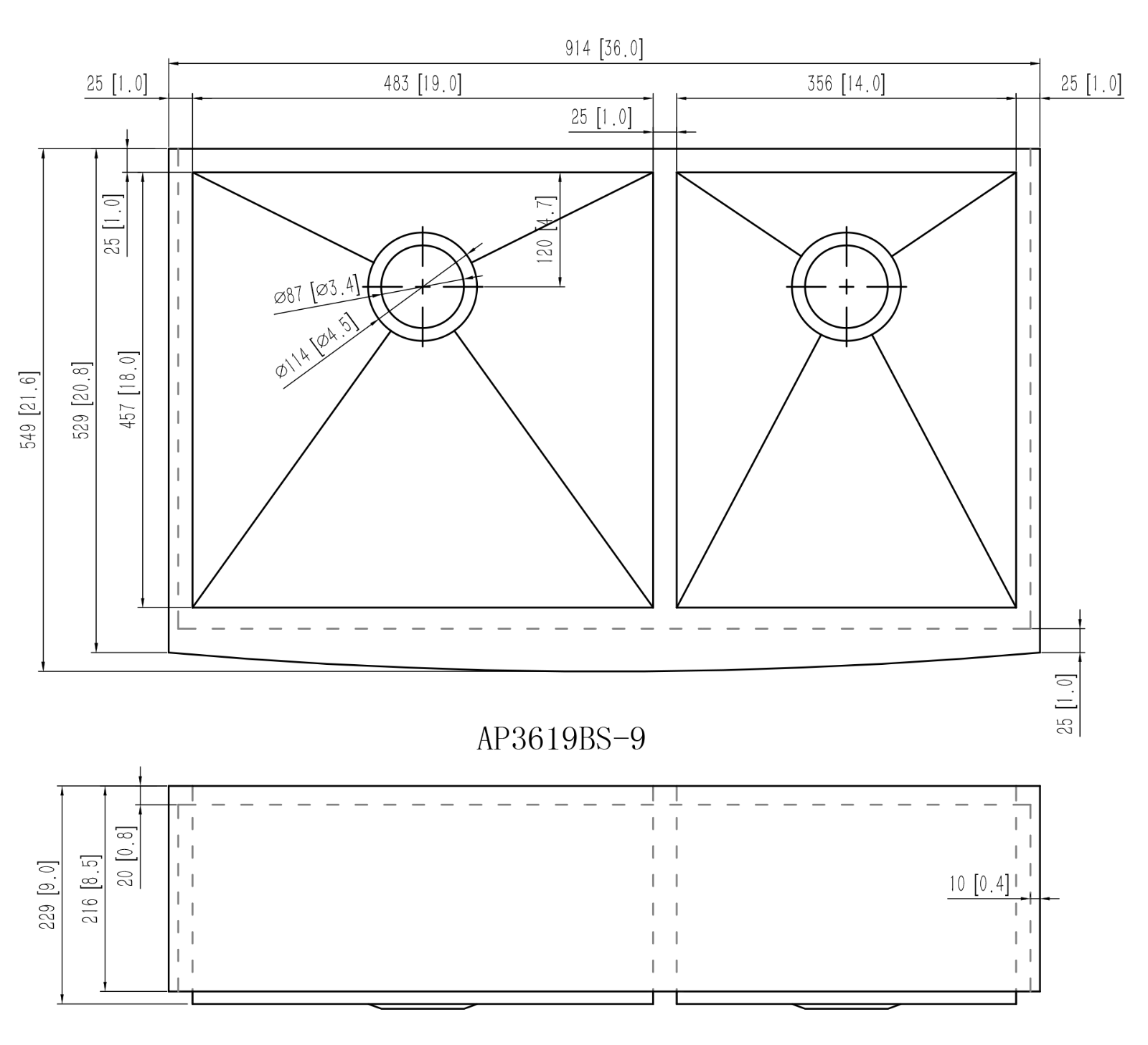36" x 22" - 1/4" x 10" Satin Kitchen Sink | AFD3622L
