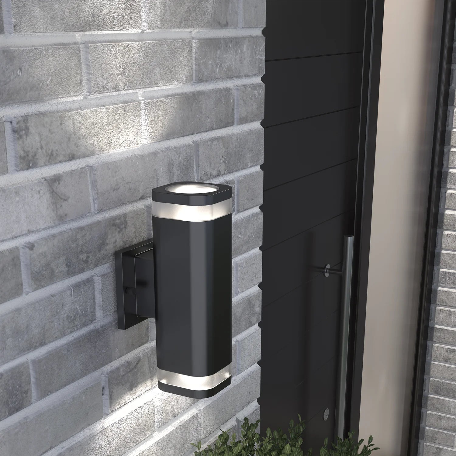 Treat yourself to the beauty of the Mettle's Integrated LED outdoor wall light and enhance your hallway or outdoor space the right way. Its two luminous white rods accentuate its lighting effect and ensure irreproachable luminosity inside and outside of your home. Its impressive light flow projects in 3 directions for maximum efficiency. What's more, its sleek and cylindrical silhouette make this compact and convenient lighting fixture easy to install in all spaces, even the most cramped ones. In addition to its aestheticism and reliable performance, the Mettle LED outdoor wall light is also remarkably energy efficient, as demonstrated by its Energy Star certification. Its integrated LED light boasts a long lifespan and can significantly reduce the consumption of energy. Choose this high-quality and beautifully streamlined wall sconce to enhance the beauty of your home.