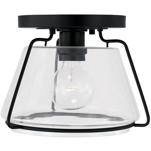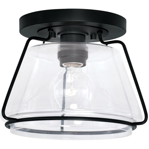 Inspired by a vintage lantern, this 1-Light Flush Mount is full of farmhouse flair. The Matte Black finish on the cage silhouette is the perfect complement to the tapered clear glass cloche.