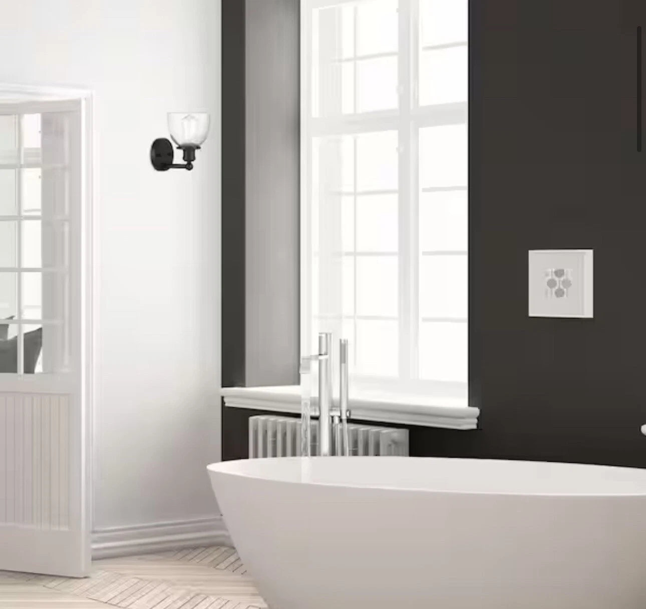 The Evelyn family of light fixtures adds a modern industrial touch to your interior decor. With its sleek matte black finish and clear glass shade, the Evelyn wall sconce is sure to be a conversation piece and a visual joy for years to come. This wall-mounted light is perfect for hallways, bedrooms, bathrooms, and anywhere else you may need some accent lighting. Evelyn wall sconces are easy to install with included instructions and hardware, and should be hardwired to an in-wall 120V power source. This sconce light requires (1) E26 60W max incandescent bulb, or the LED equivalent, which needs to be purchased separately. Be sure to check out other fixtures in the Evelyn collection on this site.