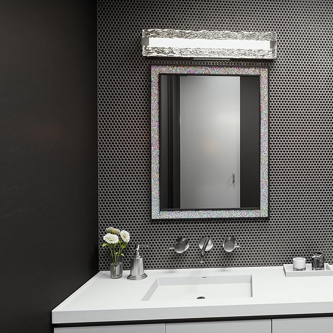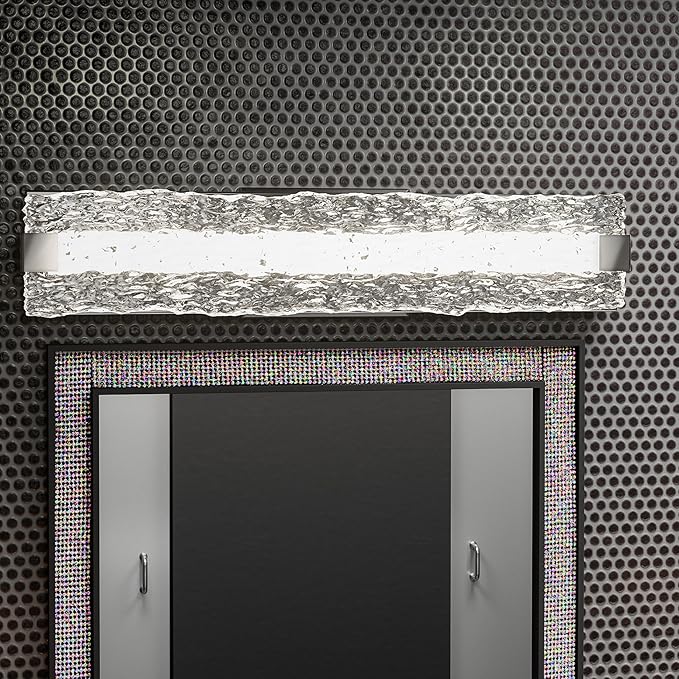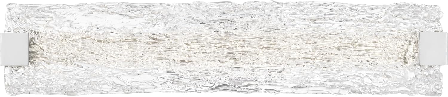 Inspired by delicate sheets of ice, the Winter collection is intense and dramatic. The integrated LED technology runs across the full length of the fixture, showcasing the unique crackling effect of the glass. Keeping with the contemporary style, the backplate and side brackets are finished in a glossy polished chrome.