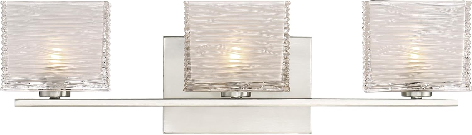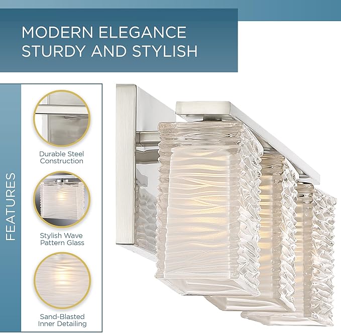 With a unique glass pattern and simple base, the Westcap bath light collection is contemporary with a twist. The beautiful waving pattern of the thick clear glass is accented by the sandblasting on the inside of the shades, creating a unique spa-like ambiance for your home bathroom. Choose from multiple size options and two classic finishes to complete the look; Westcap is available in polished chrome, brushed nickel, or matte black.